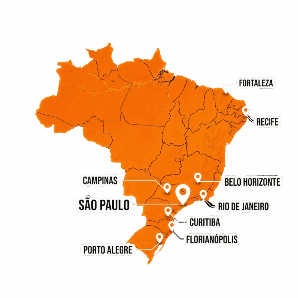 São Paulo, Rio de Janeiro, Belo Horizonte, Recife, Fortaleza, Florianópolis, Campinas, Curitiba e Porto Alegre